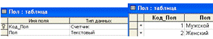 В таблице Отдел в режиме конструктора (рис.6а) используется 2 поля. Поле