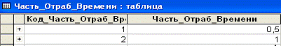 В таблице Должность в режиме конструктора (рис.2б) используется 2 поля.