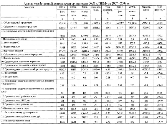 эффективности себестоимости продукции на предприятии ОАО «ЛЗПМ»;