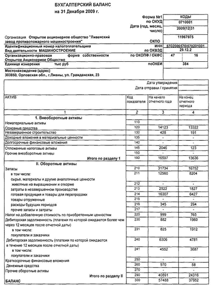 готовой продукции в ОАО «Ливенский завод противопожарного машиностроения»;