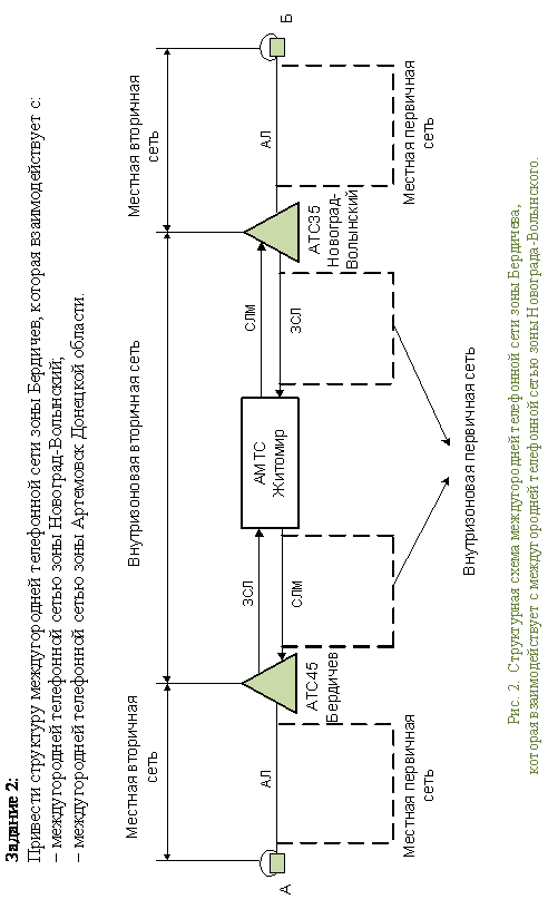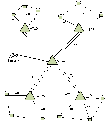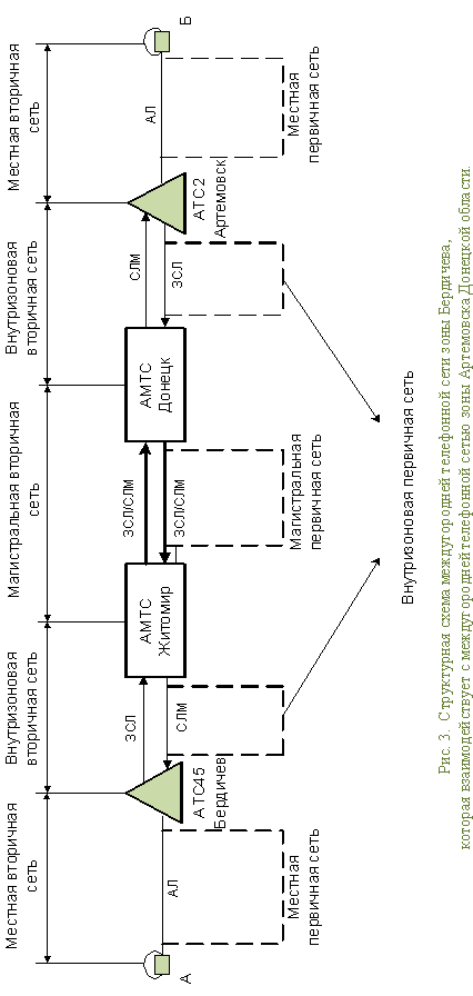 между 5 АТС зоны Бердичева; приведена структура междугородней телефонной сети