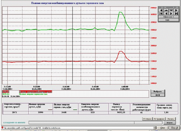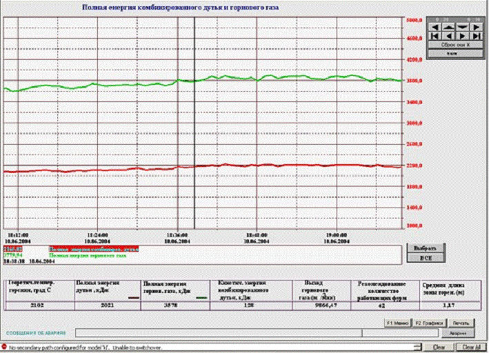 комбинированного дутья на срезе фурмы кинетическая энергия составляет 2,06-6,96