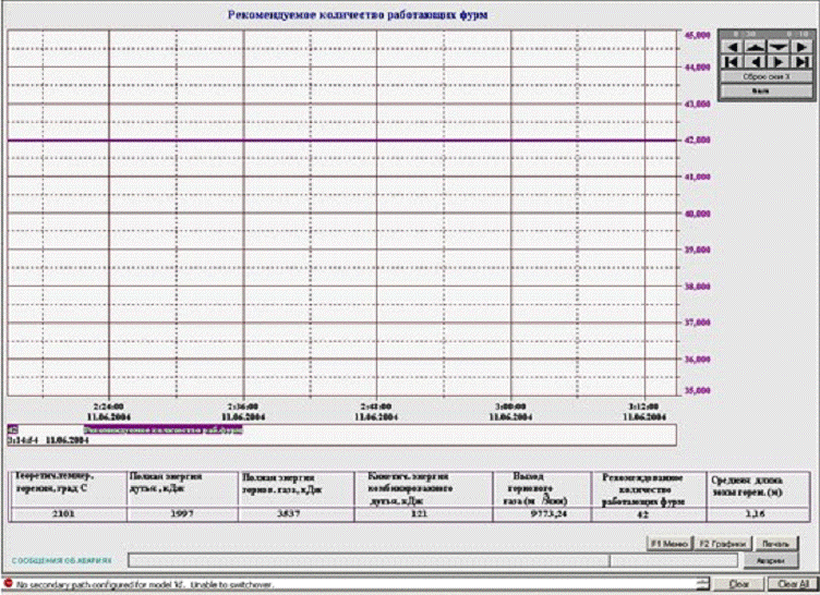 Рис. 1.4. Экранная форма рекомендуемого числа работы фурм на