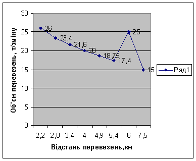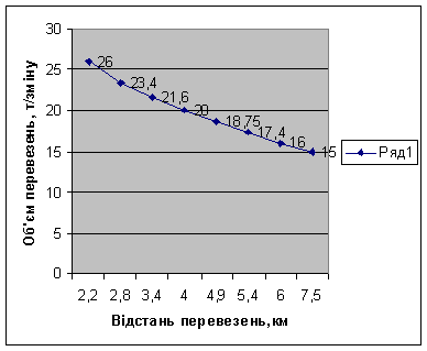 Рис. 5.1. Залежність обсягу виробітку від відстані перевезення