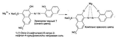 добавили 1-2 капли индикатора кислотный хром черный. Титруем раствором Трилона