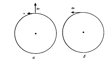 направлении (рис. 2.1,б). Величина «удара» была выбрана для круговой орбиты с