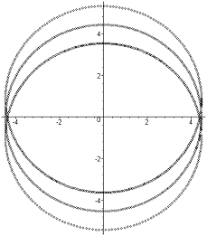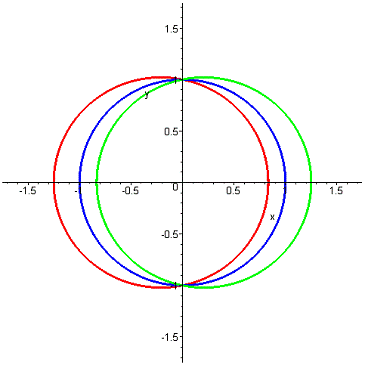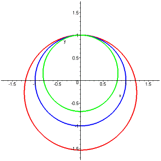 (центральная орбита - круговая до возмущения, внутренняя - возмущение