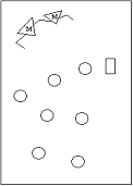 остальные - овцы. Дом волка находиться в середине площадки, а у овец два дома