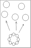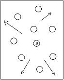 Играющие образуют круг и становятся на расстоянии 2 - 3 шагов