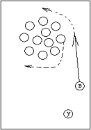 одно движение, водящий посылает его назад, за исходную черту. После этого
