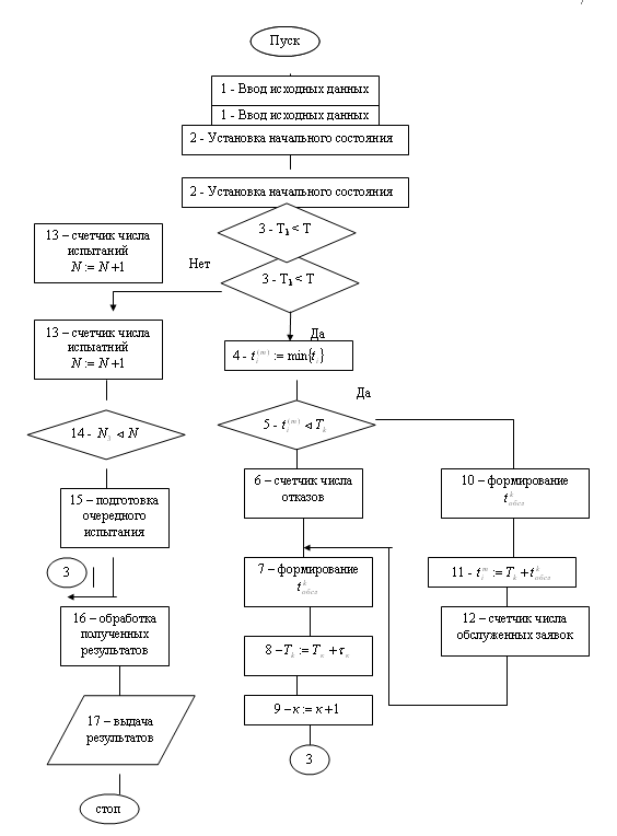 7 - формируется поток заявок, определяет интервал времени между двумя
