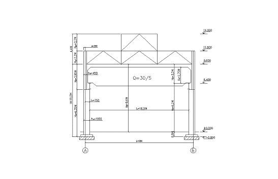 Генеральные размеры цеха:1 - отметка верха рельса;- пролет