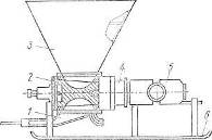 бункер для ЕВ; 4 - пневмодвигатель; 5 - редуктор; 6 - рабочая камера; 7 -