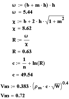 Расчет проводим на основании формулы Шези