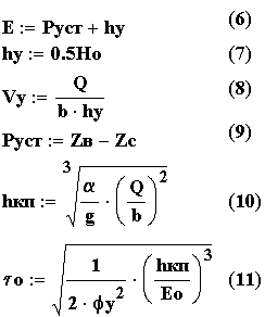 Приведем формулы необходимые для расчета водобойного колодца: