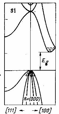 у кремния лежит в направлении осей [100] недалеко от границы зоны Бриллюэна.