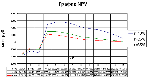 вариант, который имеет максимальный NPV за проектный срок разработки. Принимаем вариант с