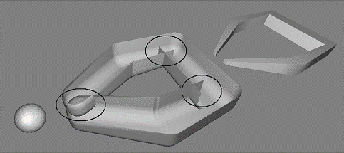 подвижный многогранник пересекается с неподвижным, на поверхности, когда