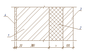утеплителя принимаем кратной 0,02 м: х = 0,18 м, толщина стены