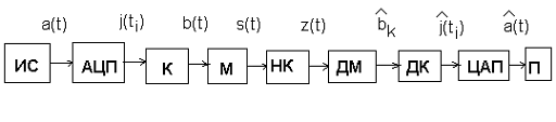 ДК - декодер, восстанавливает номера передаваемых уровней j(ti);