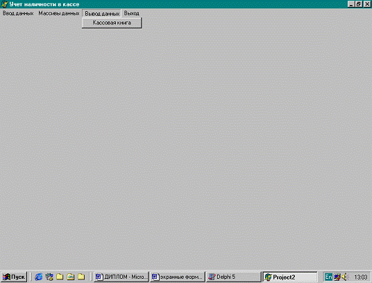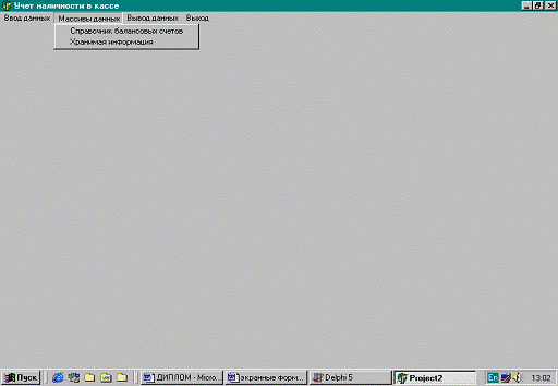 Экранная форма «Массивы данных»