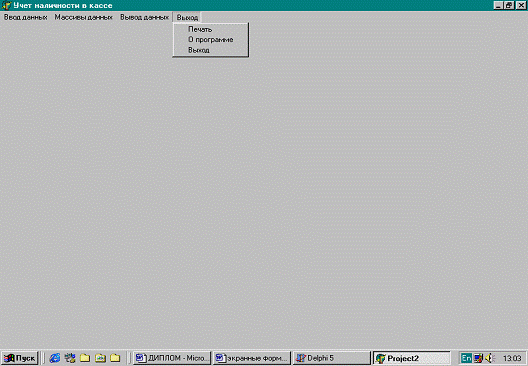 Экранная форма «Вывод данных»