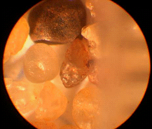 кристаллами, зернами, обломками, агрегатами, частицами и т.п., т.е. зависит от