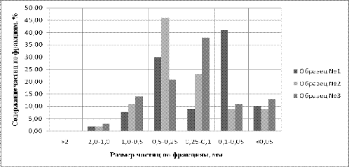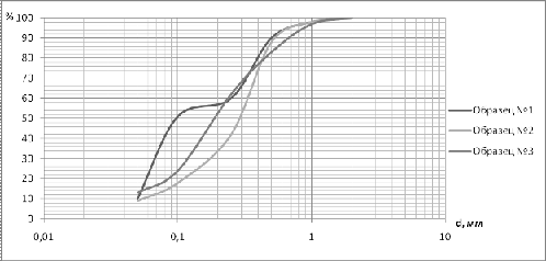 содержание среднепесчаной (образец №2) и мелкопесчаной (образец №3). А