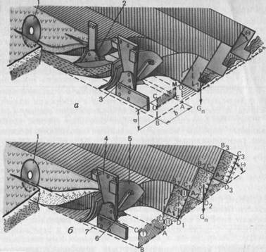 районах. Пласт, подрезанный лемехом 1 и поднятый уширителем 8, переваливается
