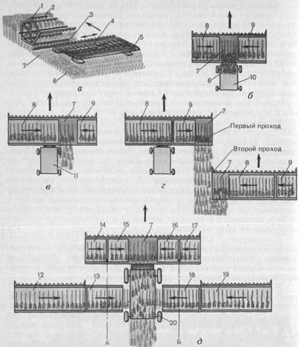под шнек 5. Последний уменьшает ширину полосы срезанных растений до ширины