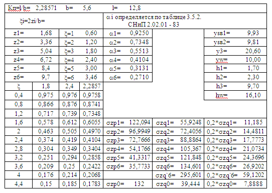Таблица 1 (коэффициент распределения давления в грунте под фундаментом, а).
