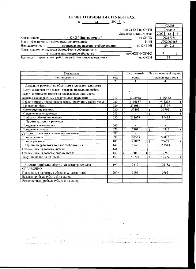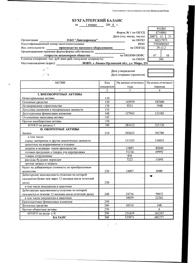 финансово-экономическая деятельность ОАО «Ливгидромаш».