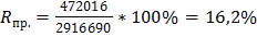 Пч -чистая прибыль Пч.=472016 (руб.)