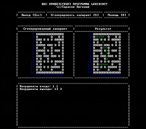 лабиринте. Предусмотреть генерацию лабиринта и возможность выбора пользователем