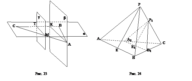 точка вне этих плоскостей и окружность в одной из этих плоскостей (рис. 44).