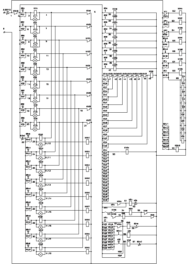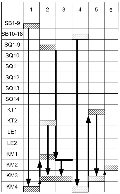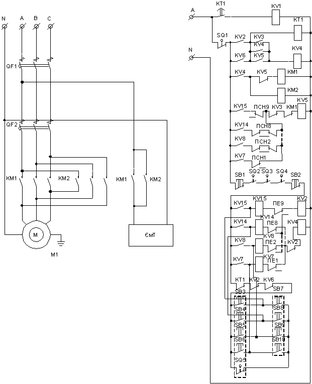 KV2,KV4, контакт підлоги SQ5, контакт кнопки SB10, катушка поверхового реле