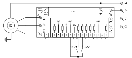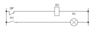 KV7, контакт поверхового перемикача ПЕ1, розмикаючий допоміжний контакт KV2,