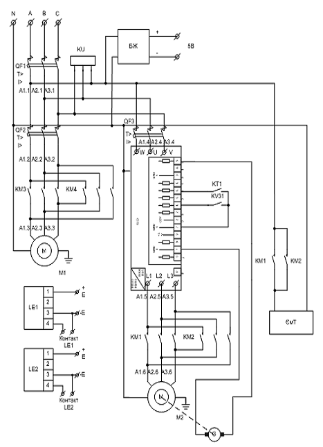 контактами шунтують кнопку SB10 і подає живлення в котушку контактора КМ1.