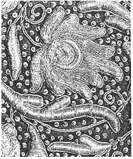 узоры. Чтобы получить рельефные детали, под шитьё подкладывали толстые нити