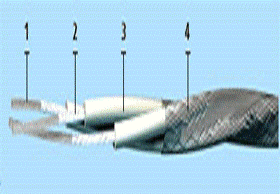 ниток; 3) Ізоляція з ПВХ пластикату;4) Екран з мідних луджених проволікав.