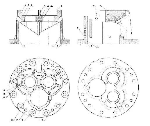 для размещения в нём ведомого и ведущего ротора, золотника, стакана,