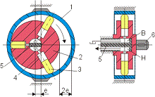 стрелке, поршни совершают сложное движение - они вращаются вместе с ротором и