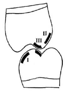 Имеет седловидную форму с возвышениями с язычной (небной) и вестибулярной