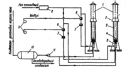 отстаивания конденсата, двух печей, а также устройств для подачи воздуха,