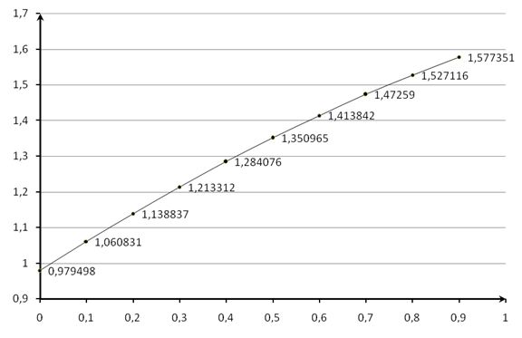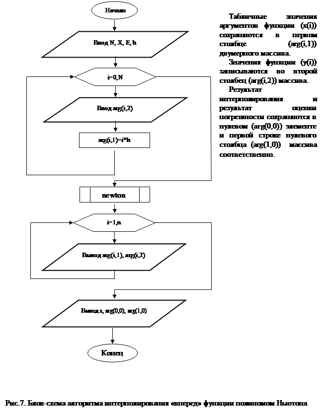 исследуемой функции, учитывая равный интервал между значениями аргументов,