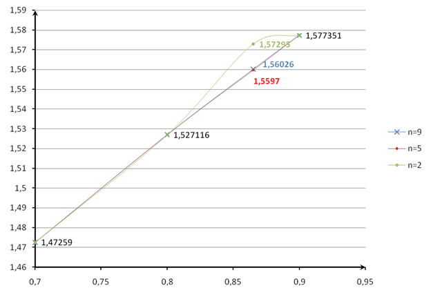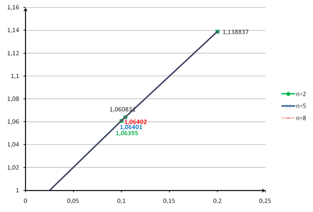 функции на рассчитанном участке с достаточно высокой точностью повторяет график