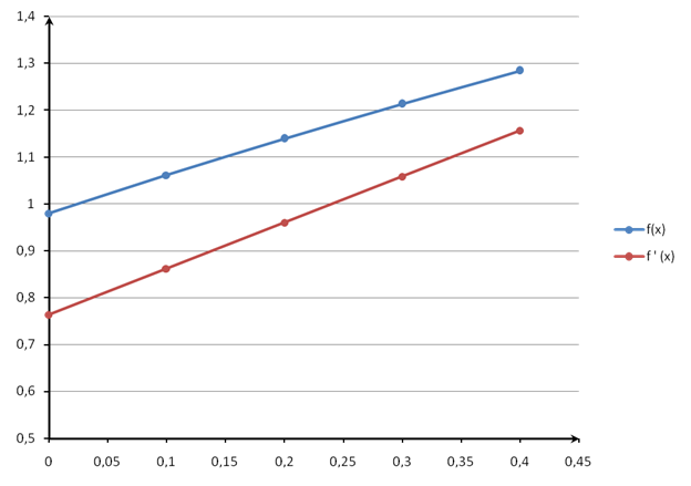 малый шаг, а так же то, что функция близка к линейной, наиболее