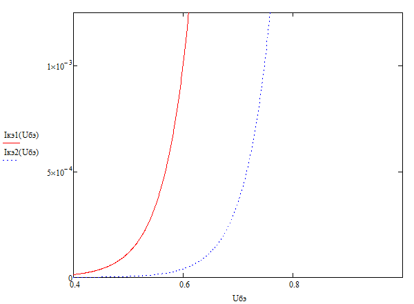 входных характеристик для двух значений напряжений коллектор – эмиттер
