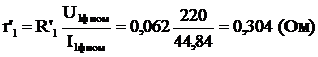 обмотки фазы статора при 20˚С r1(20), Ом;