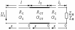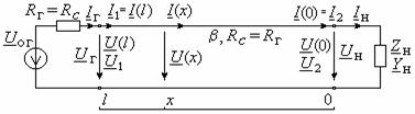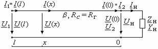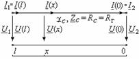 значений напряжения и тока вдоль нагруженного отрезка кабеля